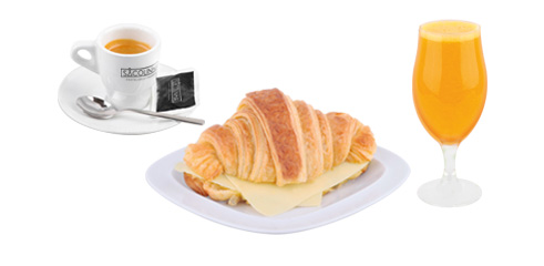 Croissant (or Sweet Bread with Coconut or Brioche) with Cheese or Ham + Orange Juice + Espresso